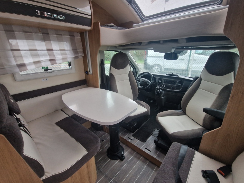 EQUIPEMENTS DE SERIE : STORE EXTERIEUR - TV TNT SAT MANUEL - PANNEAU SOLAIRE - PACK CAMERA DE RECUL - IMPLANTATION LIT JUMEAUX + LIT PAVILLON + DINETTE - CHAUFFAGE TRUMA GAZ - PRISE 220 V DANS LA SOUTE - COFFRE 2 BOUTEILLES DE GAZ-MOUSTIQUAIRE DE PORTE - REGULATEUR DE VITESSE ET CLIM PORTEUR - PROTECTION CABINE ISOLANT - PRISE 220 V SOUTE