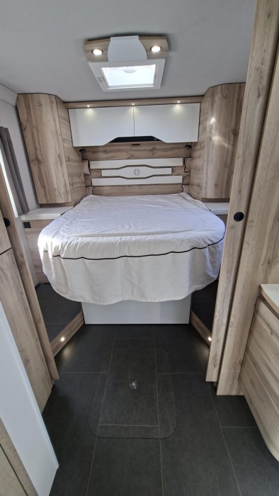 Description : Le Voyageur LV 8.5 GJL 40 ans : camping-car de luxe à la chambre transformable !