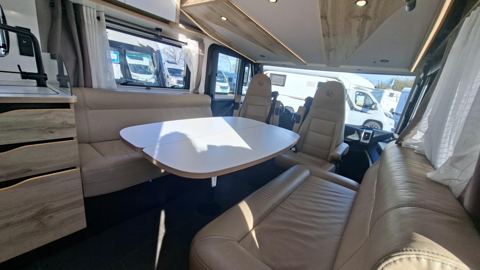EQUIPEMENTS DE SERIE : JANTES ALU / VERIN EP / MARCHE PIED / STORE EXT / COMBINE MULTIMEDIA / INTÉRIEUR CUIR TAUPE / SALON FACE FACE / CHAUFFAGE ALDE / TV ANTENNE AUTO / 2 PANNEAUX SOLAIRE / GRAND FRIGO TRIMIX / CAMERA 360 / BOITE AUTO / CONVERTISSEUR 1800 / BATTERIE SUPER LITHIUM / CHAUFFAGE ALDE / ÉCHANGEUR THERMIQUE / SUSPENSION PNEUMATIQUE / ALARME / LIT ÉLECTRIQUE / ÉPICERIE