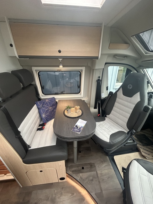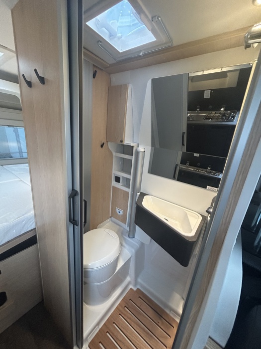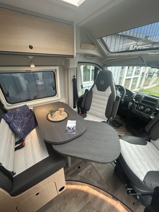 EQUIPEMENTS DE SERIE : Stickage Adventure Ambiance intérieure Adventure Placard de pavillon avec éclairage LED Placards de pavillon périphériques à l'arrière Skyview Baies à cadre Cabinet de toilette Vario Store (noir) Pack Soleil Lanterneau panoramique 70 x 50 cm - Pack Douche - Baie dans le cabinet de toilette - Tringle à vêtements dans la salle d'eau - Large marchepied - Rallonge de table dans la dînette Pack Pare-chocs avant laqué Pare-chocs avant laqué - Jupe du pare-chocs avant de couleur noire - Feux antibrouillard Pack Jantes aluminium bi-ton Volant et pommeau du levier de vitesses en cuir - Tableau de bord avec finition aluminium (Techno-Trim) - Jantes aluminium 16" bi-tons